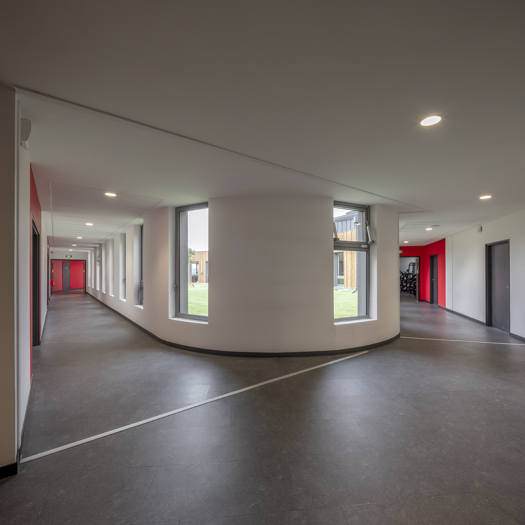 La séparation physique des activités allège la perception d’ensemble sans amoindrir l’originalité du parti architectural mis en valeur par des aménagements paysagers particulièrement qualitatifs.