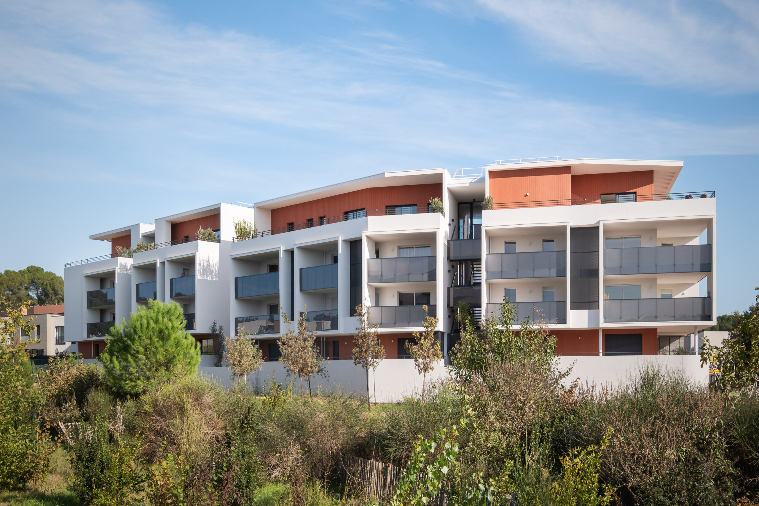 L’opération prend place au cœur de la nouvelle ZAC « Le Castelet » d’une superficie de 14 hectares à Clapiers. La conception du projet révèle une composition architecturale affirmée et singulière, en correspondance avec les objectifs qualitatifs portés par le projet urbain et paysager.
